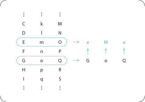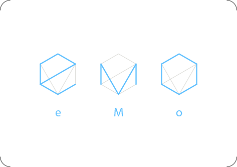 当グループの主力商品「GoQSystem」の商品より「G」「o」「Q」それぞれの上位2文字目を抜き出した「e」「M」「o」により構成されており、より高い視点から各グループ会社をよく見渡せる存在でありたいという思いを表しています。また「e」「M」「o」の文字で構成されたマークは、六角形のハニカム構造を象っており、各グループ会社をしたから安定して支える存在でありたいおいう想いを体現しています。
